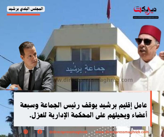 في تطور غير مسبوق بالمشهد السياسي بالإقليم ، أقدم عامل إقليم برشيد، السيد جمال خلوق، على توقيف رئيس جماعة برشيد طارق قديري، إلى جانب أربعة من نوابه وثلاثة مستشارين آخرين ، وذلك بعد رصد لجنة تفتيش تابعة للمفتشية العامة للإدارة الترابية مجموعة من الاختلالات التي شملت ملفات التعمير والضريبة على الأراضي غير المبنية والصفقات العمومية والرخص التجارية.